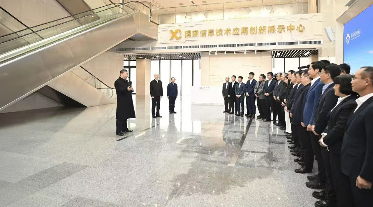 Chinese President Xi Jinping visited the National Information Technology Application Innovation Park in Beijing E-Town on the morning of Feb. 9, his first inspection tour in the opening year of the 15th Five-Year Plan period.
