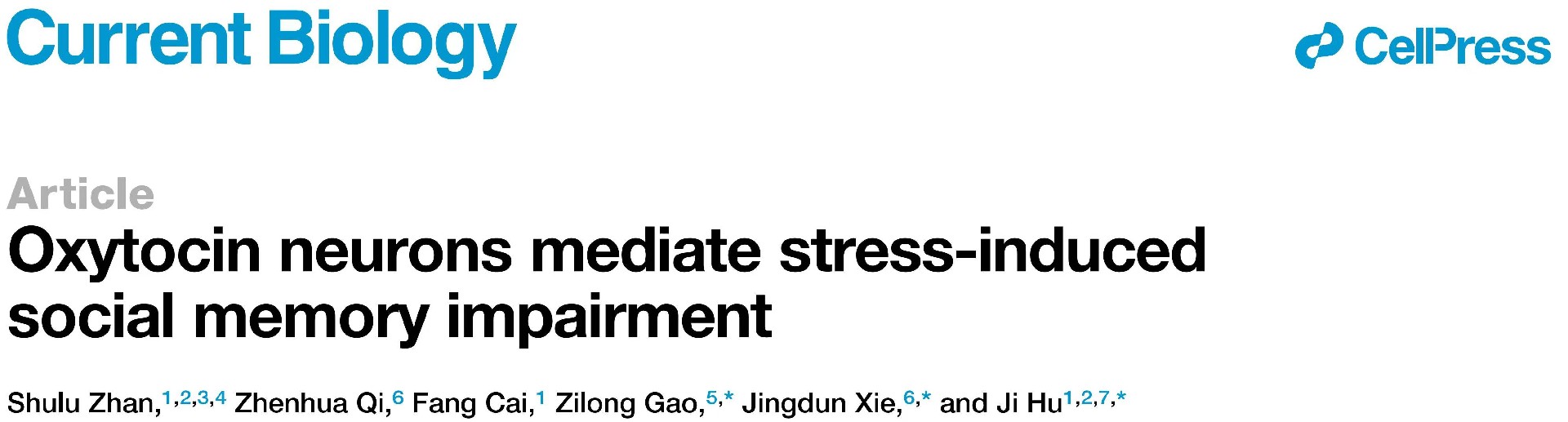 Current Biology | Oxytocin neurons mediate stress-induced social memory impairment | Zilong Gao Lab