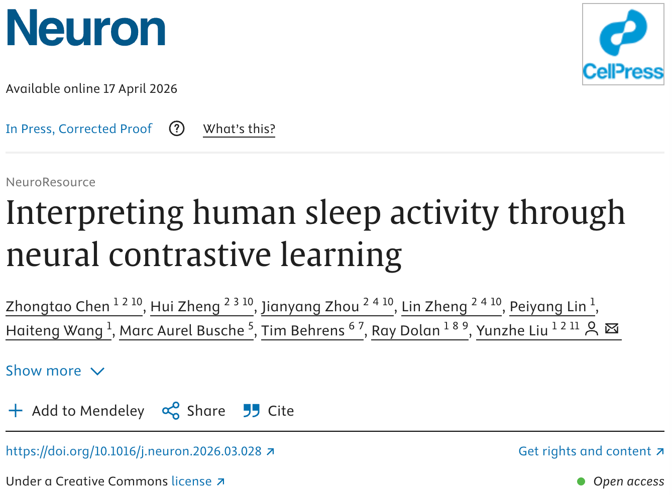 Neuron | Interpreting human sleep activity through neural contrastive learning | Yunzhe Liu Lab