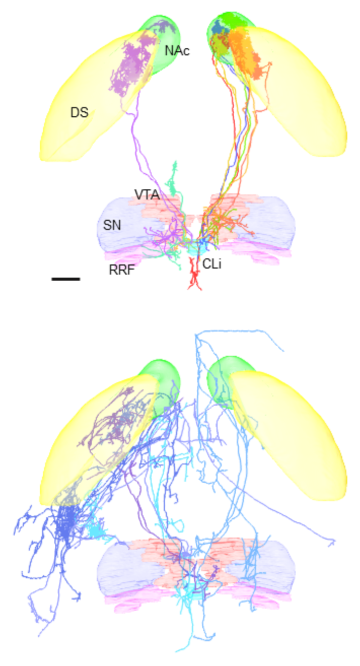 Figure 2. 15 completely reconstructed dopamine neurons revealing two projection patterns