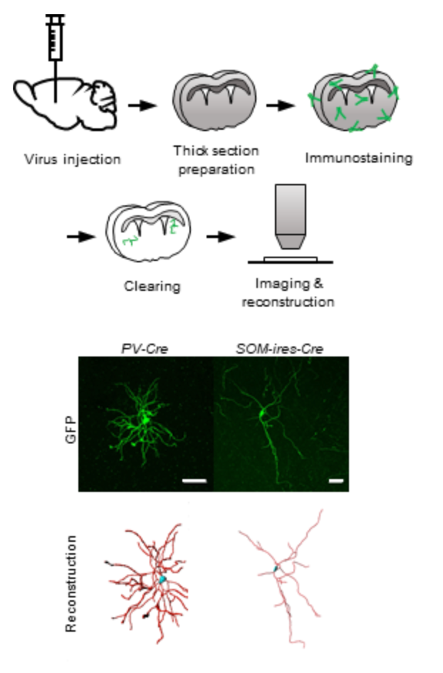 Figure 4. Rapid reconstruction of PV and SOM interneurons achieved by sparse labeling and tissue clearing