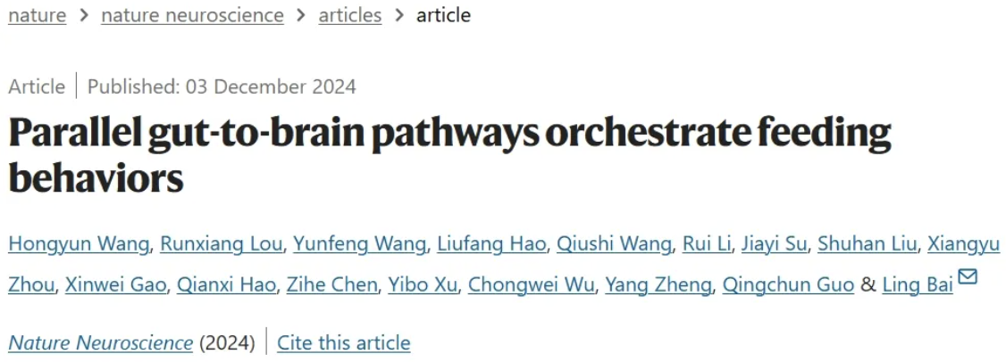 Nature Neuroscience | Parallel Gut-to-Brain Pathways Orchestrate Feeding Behaviors | Ling Bai Lab
