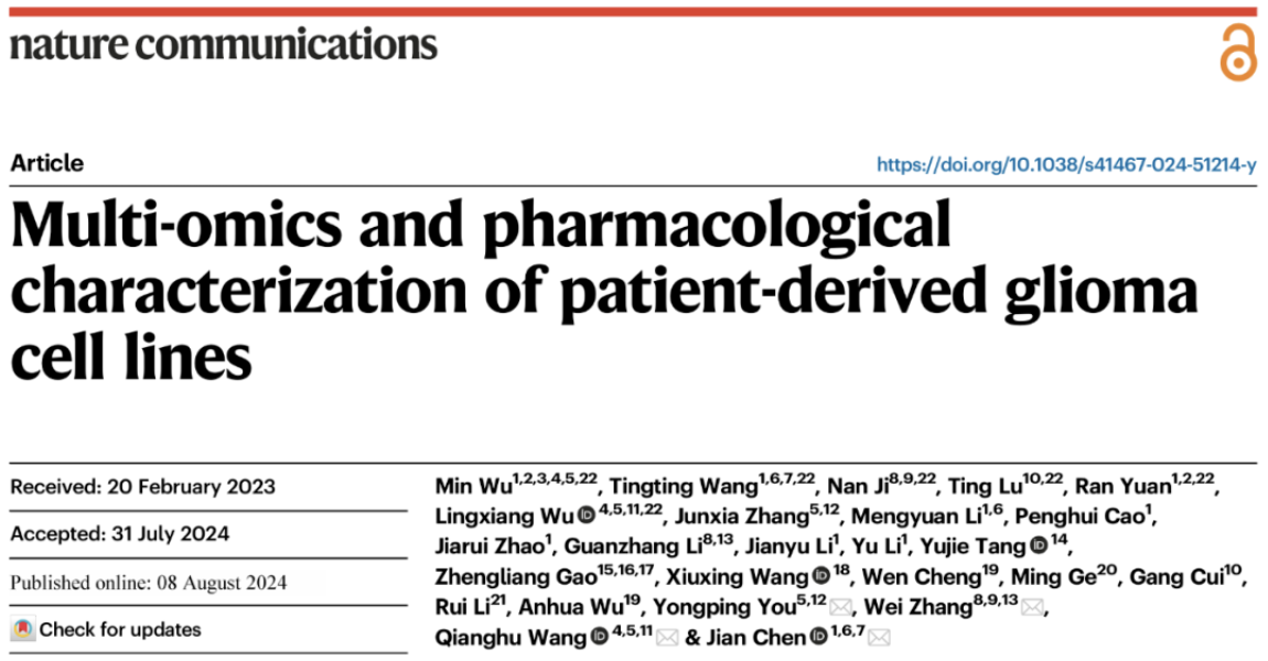 Nature Communications | Multi-omics and pharmacological characterization of patient-derived glioma cell lines | Jian Chen Lab