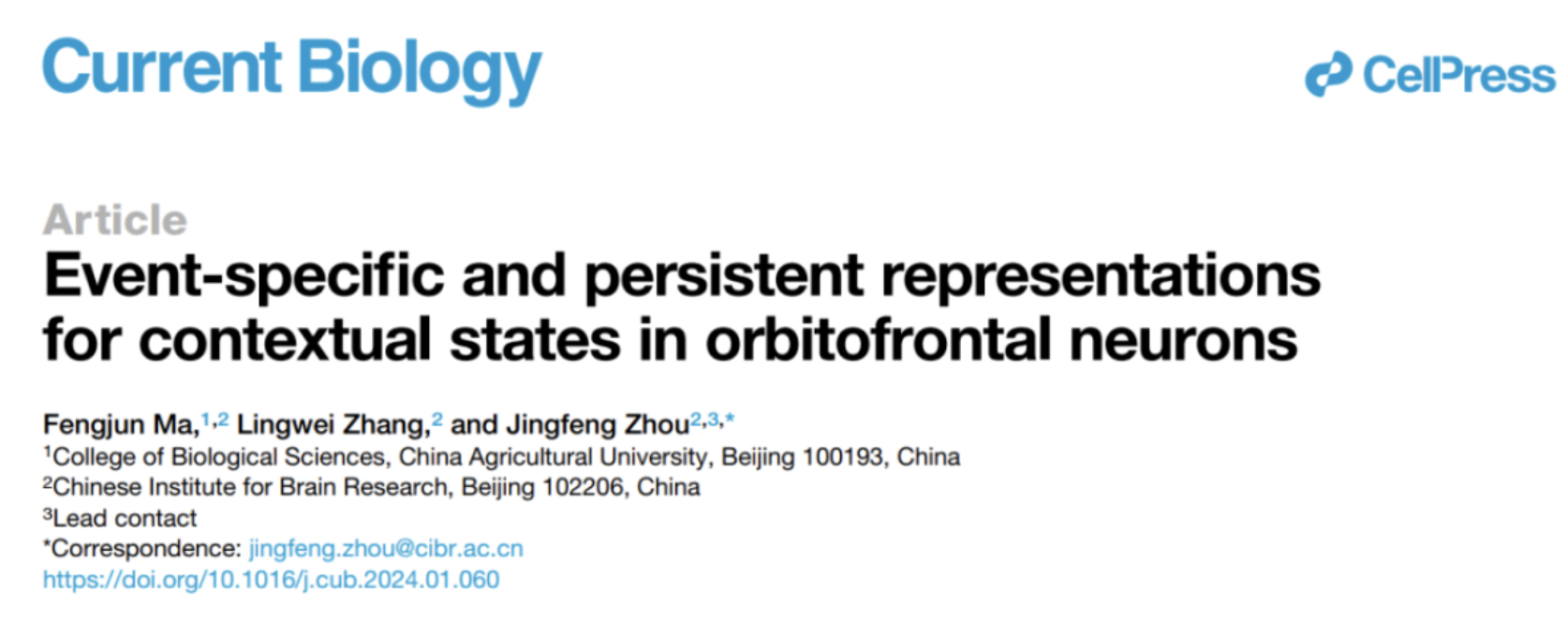 Current Biology | Event-specific and persistent representations for contextual states in orbitofrontal neurons | Jingfeng zhou Lab