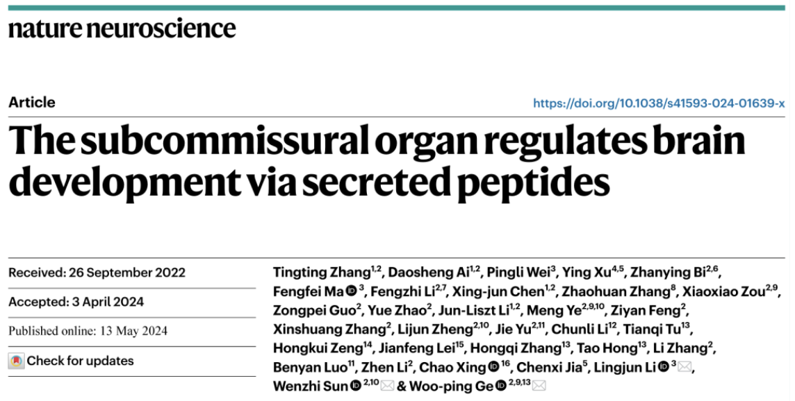 Nature Neuroscience | The subcommissural organ regulates brain development via secreted peptides | Woo-ping Ge Lab