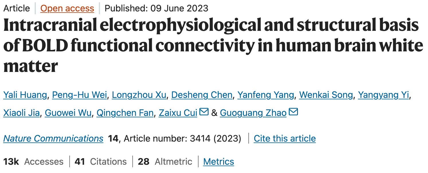 Nat. Commun. | Intracranial electrophysiological and structural basis of BOLD functional connectivity in human brain white matter | Zaixu Cui Lab