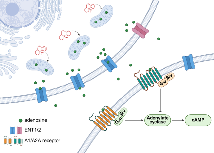 Figure 4: Mechanism of ketamine-induced adenosine release in the brain.