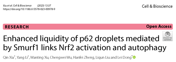 Cell & Bioscience | Enhanced liquidity of p62 droplets mediated by Smurf1 links Nrf2 activation and autophagy | Lei Dong Lab
