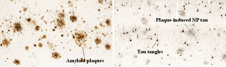 Alzheimer’s disease (AD) is the No.1 cause of dementia, and one of the most challenging unsolved medical problem in the world. AD patients show severe neurodegeneration and cognitive impairment. Pathologically, AD is characterized by extracellular deposition of Aβ plaques and intraneuronal accumulation of neurofibrillary tangles (see pictures below). Aβ plaques begin to accumulate in patients’ brain 10-20 years prior to their symptom onset. When the plaque load reaches plateau, tau pathology arises, followed by onset of neurodegeneration and cognitive decline. The cause of late-onset AD is still unclear. In the past century, the mainstream opinion deems Aβ as the key player that triggers the downstream detrimental cascades, and APOE, the strongest genetic risk factor for late-onset AD, was believed to affect AD primarily by regulating the amyloid pathology. However, therapeutic strategies targeting Aβ have not been successful so far.