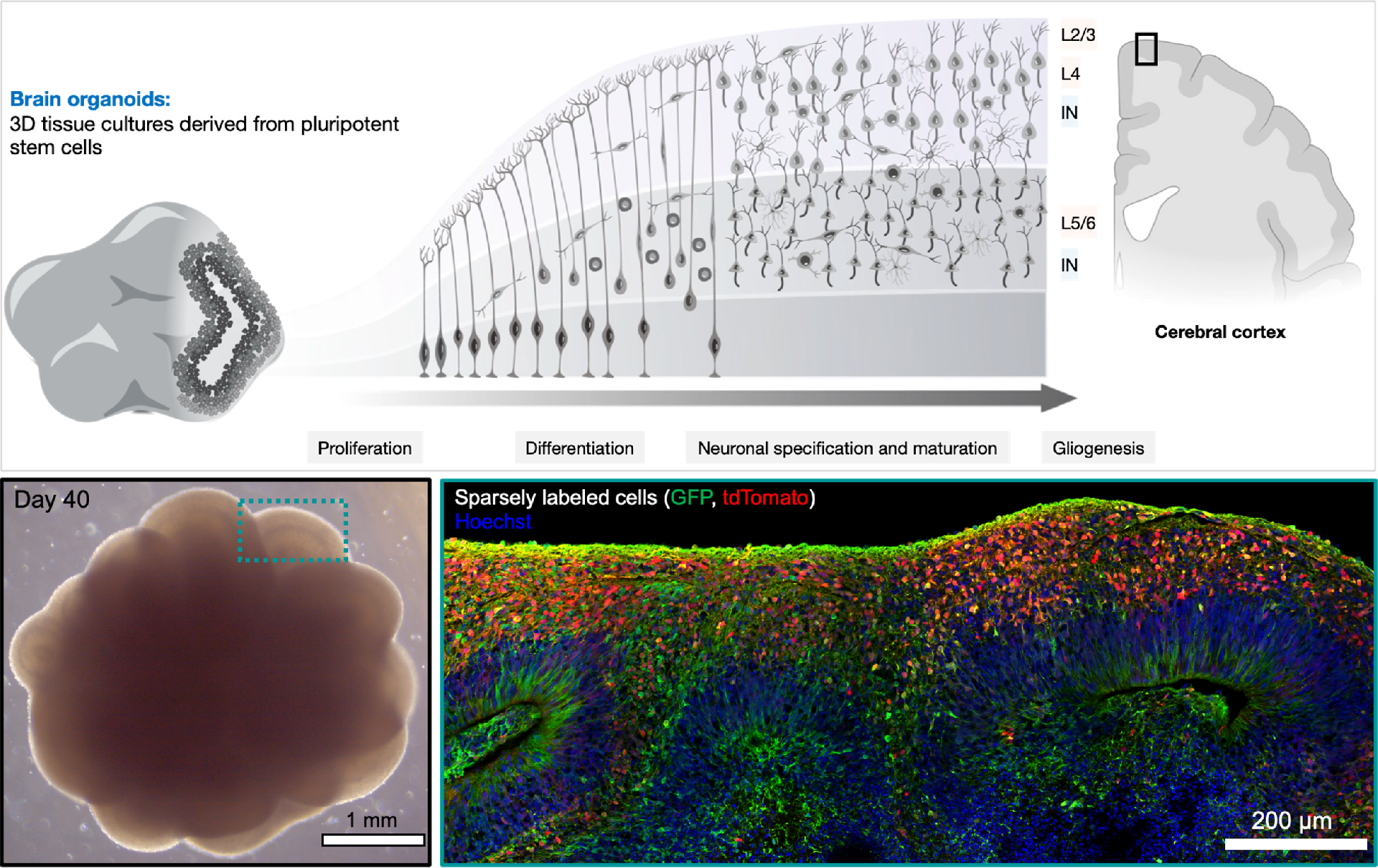1. Human Brain Organoids: Utilizing brain organoids derived from human pluripotent stem cells (PSCs), we create models that mimic the development and organization of the human brain in vitro. This approach allows us to study the developing processes of the human brain in real time (Figure 1).
